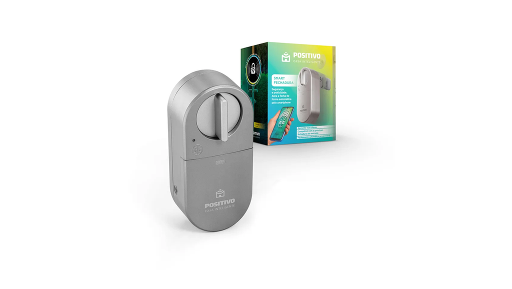 A fechadura Smart Positivo Casa Inteligente se destaca pelo custo-benefício e integração com assistentes virtuais. Permite controle remoto via aplicativo, além de abertura por senha.