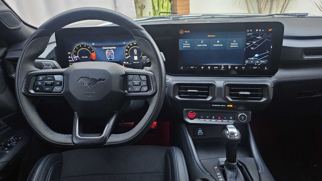 Embora os 507 cv de potência e os 57,8 kgf/m de torque sejam impressionantes e, em conjunto com o câmbio automático de 10 velocidades, capazes de fazer o lendário motor Coyote 5.0 V8 chegar de 0 a 100 km/h um décimo de segundo mais rápido que o sedan coupé elétrico BYD Seal (3,7s x 3,8s), o Dark Horse não é apenas bruto. Ele também é muito tecnológico.